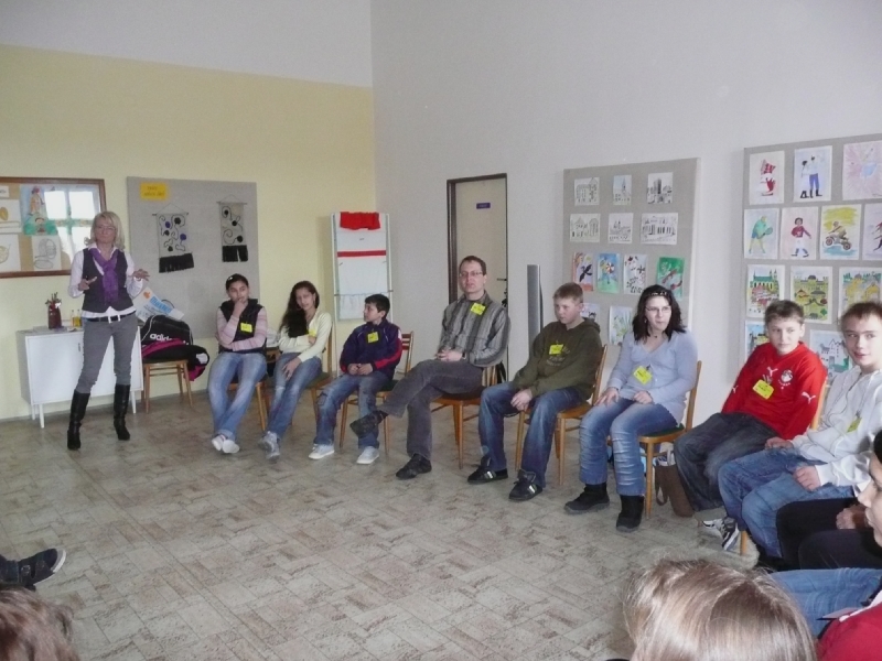V místní tělocvičně se v dobré náladě sešly tři týmy ze škol speciálních. Jeden ryze český, jeden německý a jeden namíchaný tým. Hrál tzv. každý s každým. Na prvním místě se umístil český tým, druzí byli naši partneři z Marktredwitz a na třetím postu byl tým smíšený.