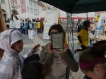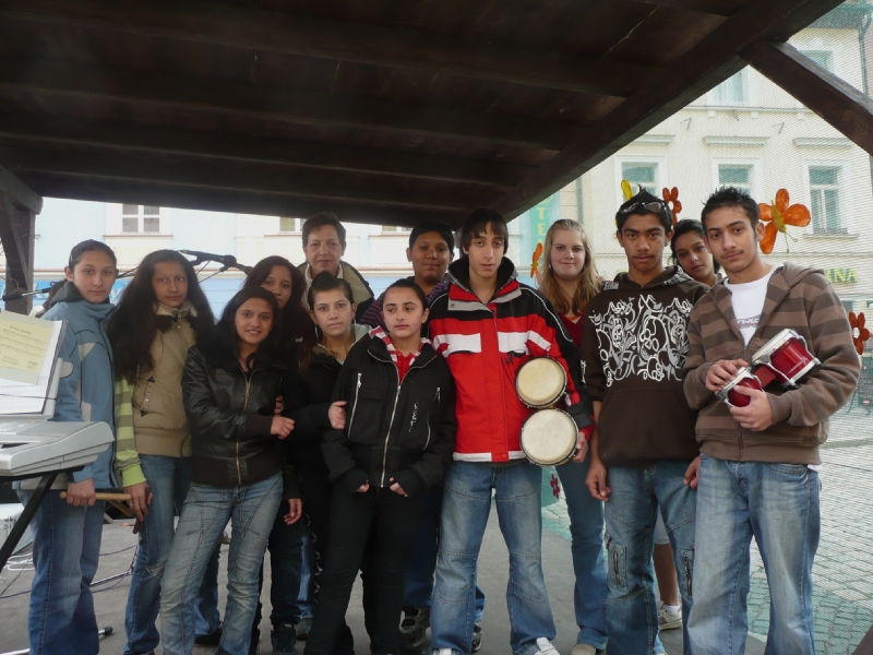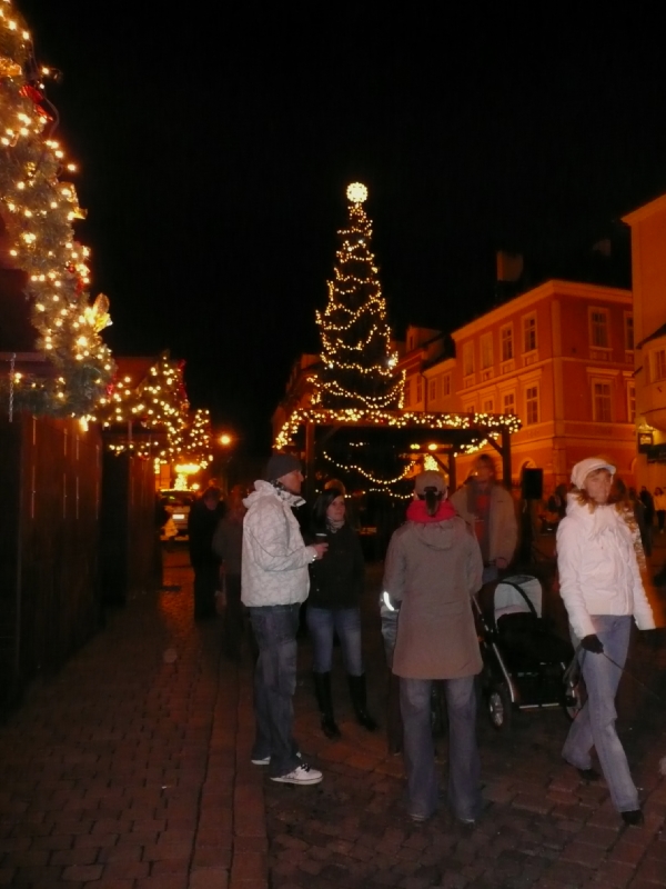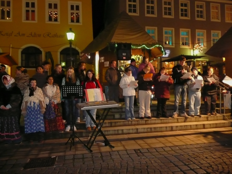 Sobotní jarmark zpestřilo vystoupení chebských dětí. Své místo v programu si našly i děti ze Základní školy Kostelní náměstí. Ti starší, převážně z druhého stupně, zazpívaly tradiční vánoční koledy, na řadu přišla říkadla a milým překvapením byla i vlastní školní hymna. Přítomní si vyslechli i jednu koledu německou, kterou paní učitelka zařadila do repertoáru záměrně – přivítali jsme na trzích návštěvu z německé praktické a speciální školy v Marktredwitz. Jedná se o dvě partnerské školy, které se společně se školou naší účastní projektu „Lena a Jens“ - /Leben mit Nachbar – Je náš soused/.