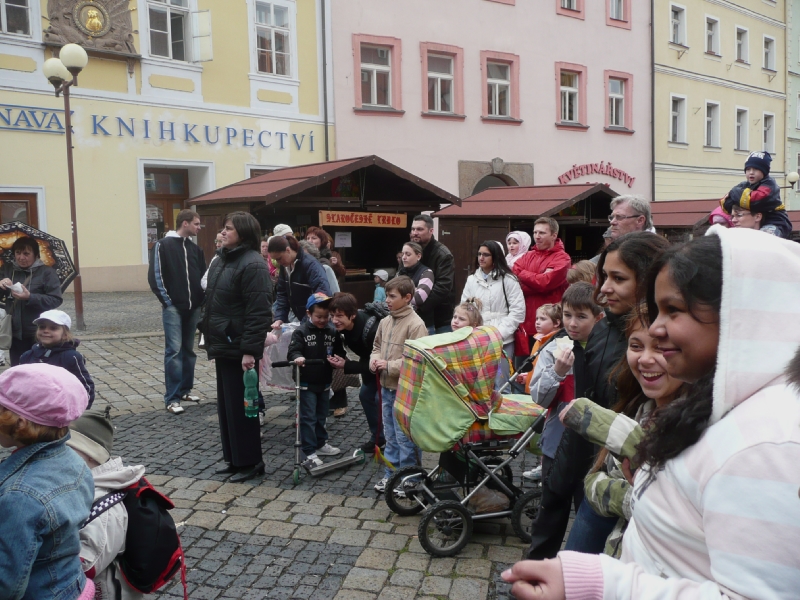 V době velikonočních svátků jsme měli možnost podpořit některé žáky naší školy na chebském náměstí. Ti vystoupili 27. března za doprovodu paní učitelky Štěpinové před městskou veřejností na velikonočních trzích s několika písničkami a básničkami o jaru. Snažili se svým zpěvem přivolat sluníčko a hlavně dobrou náladu , což se jim opravdu podařilo. I přesto, že počasí příliš nepřálo, vládla zde pohodová a sváteční nálada.