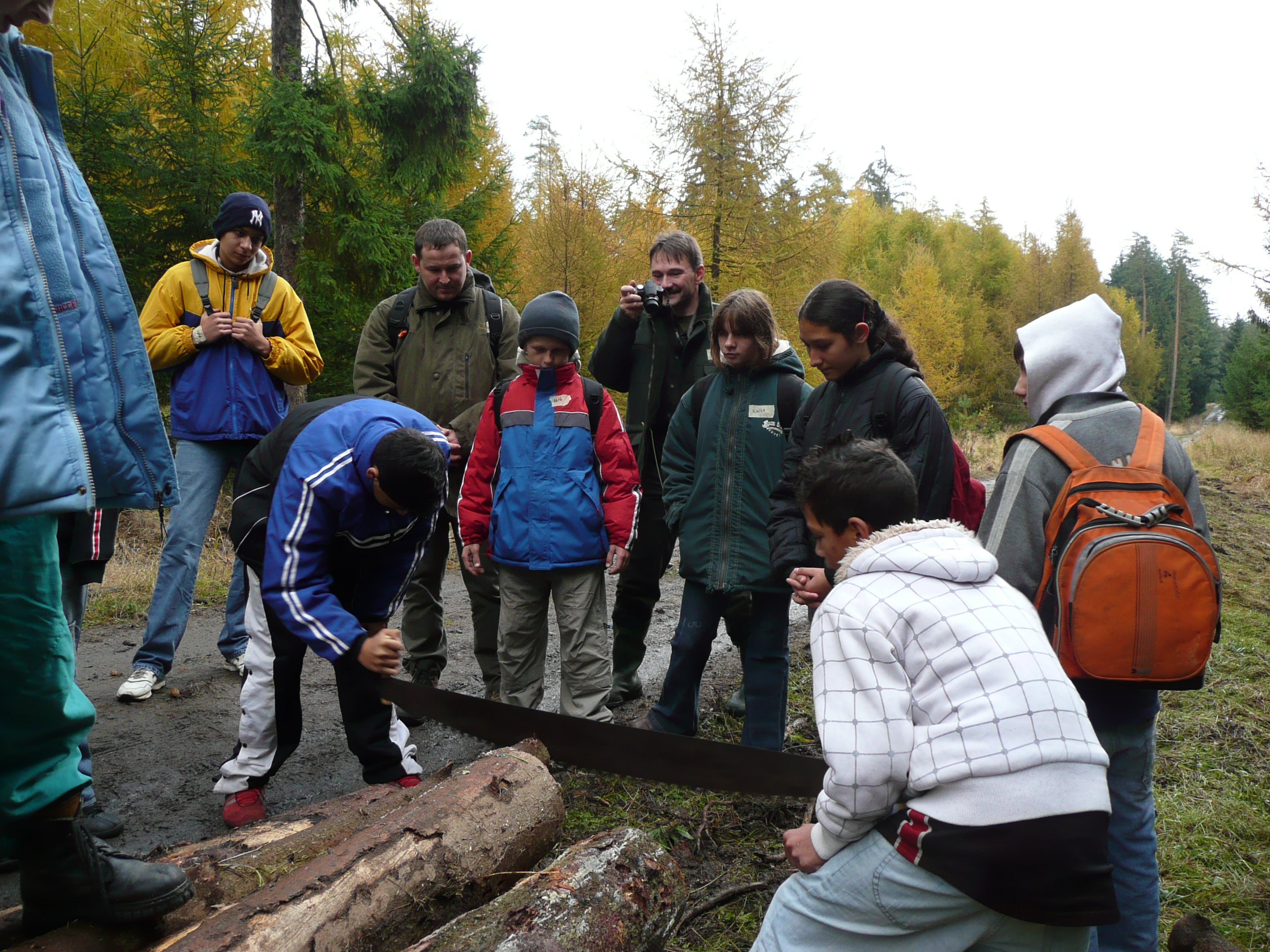 Zahrály si hru „Najdi si svůj strom“, vyzkoušely si práci dřevorubce a většina to zvládla bravurně, kdy pilou