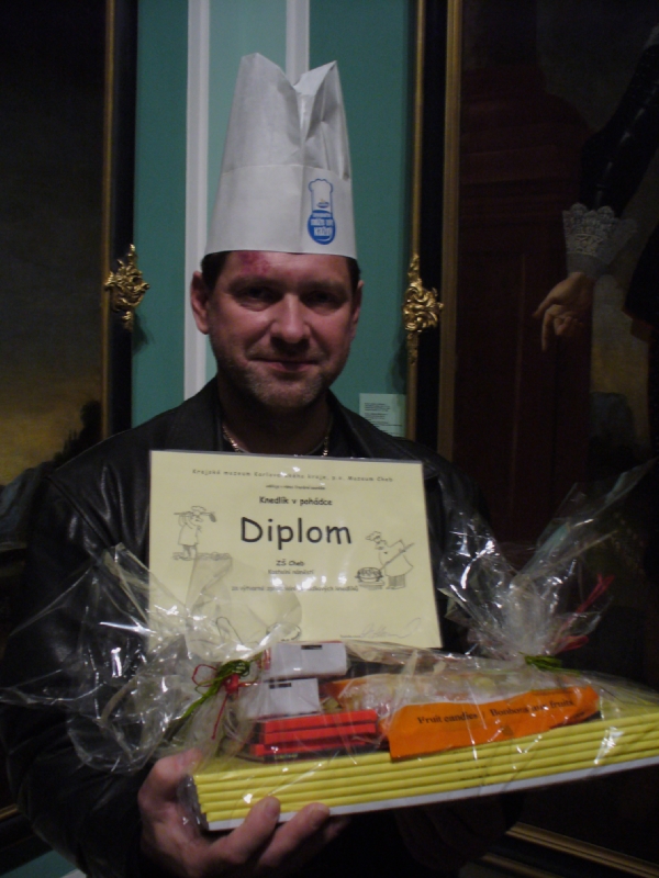 Žáci IX.ročníku a dívky z V.D vyrobili s pomocí učitelů krásné knedlíky, za které vyhráli mimořádnou cenu. Výhru převzal třídní učitel IX.ročníku v krásné „Obrazárně“ chebského muzea.