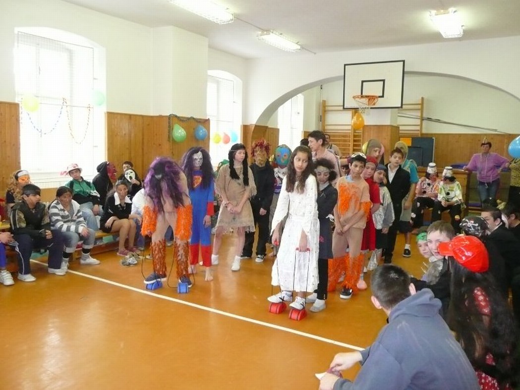 Žáci i učitelé si připravili krásné a nápadité masky, které bylo velmi těžké hodnotit a vybrat tu nejlepší. Proto se raději nevolilo, ale soutěžilo, která maska bude nejšikovnější. Zdolávaly se překážkové dráhy , soutěžilo se v různých štafetách a každý vyhrál nějakou tu maličkost.