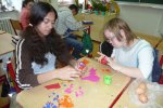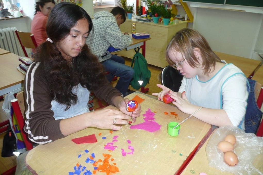 Všichni se dobře bavili a užili si krásné dopoledne spojené s tématikou velikonočních svátků. Děti barvily vajíčka, vyráběly beránky z papíru a z keramické hlíny, učily se nová říkadla a také se dozvěděly něco o hlubším-duchovním pojetí Velikonoc-proč se slaví, a co který den znamená. Učitelé s dětmi na „školičce“ připravili nádhernou velikonoční výzdobu s přípravou jarních salátů a pomazánek, po kterých se jen zaprášilo.
