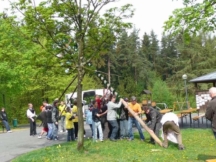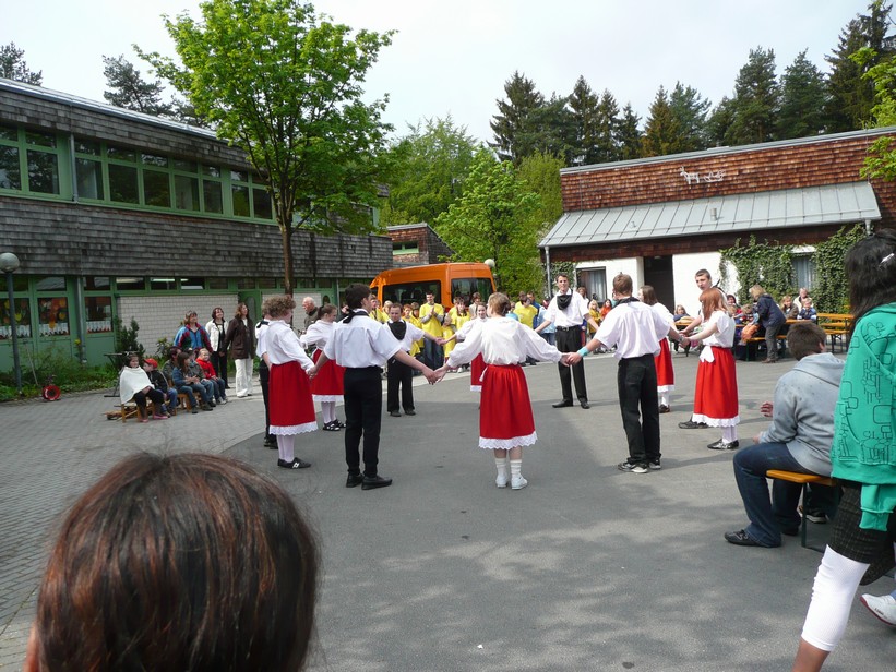 Blíží se měsíc květen, tak bychom ho měli řádně přivítat. Dne 30.4.2025 jsme byli pozváni do školy v Marktredwitz na „STAVĚNÍ MÁJKY“ . Hned po příjezdu bylo několik našich žáků (žáci 6.a7.ročníků ZŠ praktické a žáci ZŠ speciální) vyzváno k pomoci se stavěním májky. V doprovodu hry na harmoniku procházel průvod žáků s ohromnou májkou až na nádvoří školy , kde ji postavili za pomoci učitelů. Po té následovala veselice a vystoupení několika škol města Marktredwitz. Žáci naší školy zazpívali několik českých písní pod vedením paní učitelky Štěpinové a na závěr jednu písničku v němčině. Do zpěvu jsme zapojili i naše německé kamarády a všichni se velmi dobře bavili.