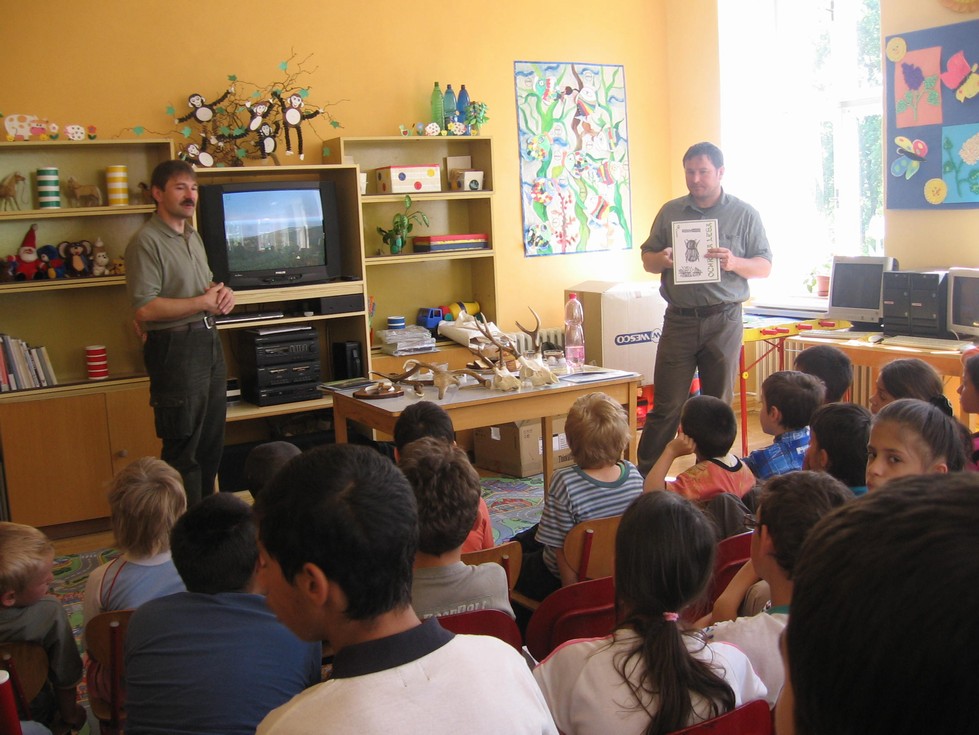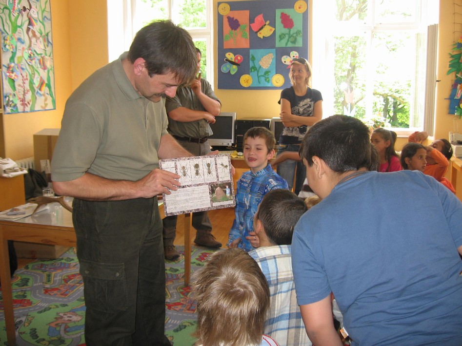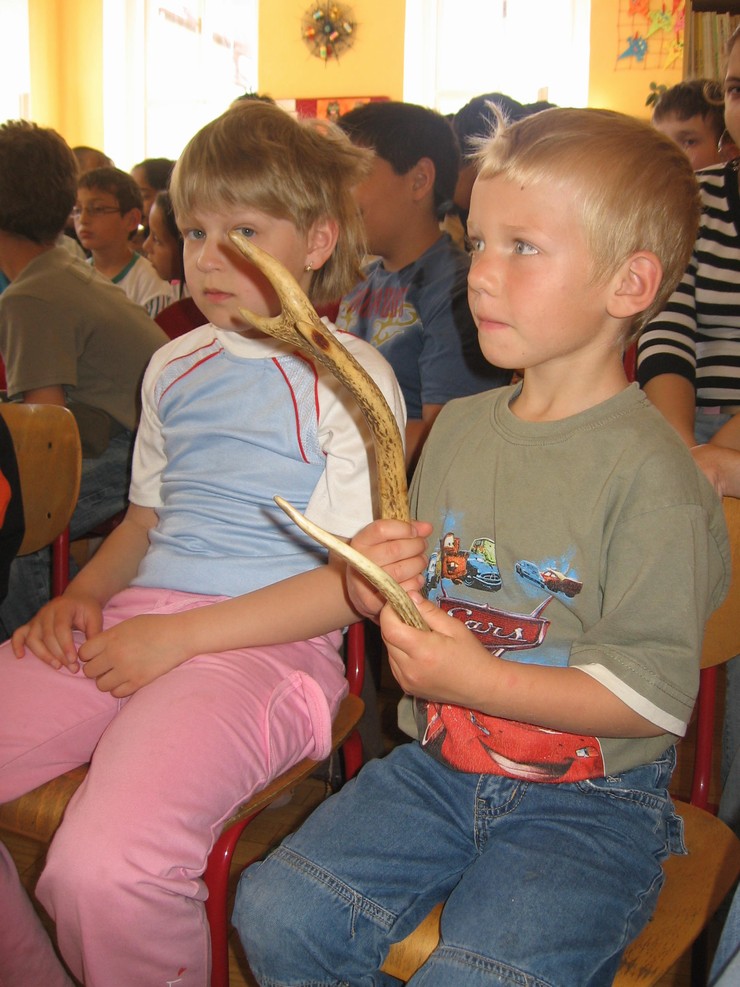 V ten samý den se na malé školičce uskutečnila beseda s myslivci. V rámci environmentální výchovy měli žáci možnost seznámit se s problematikou lesa jako nepostradatelnou a životně důležitou součástí našeho kraje. Žáci se zaujetím poslouchali a kladli mnoho otázek.